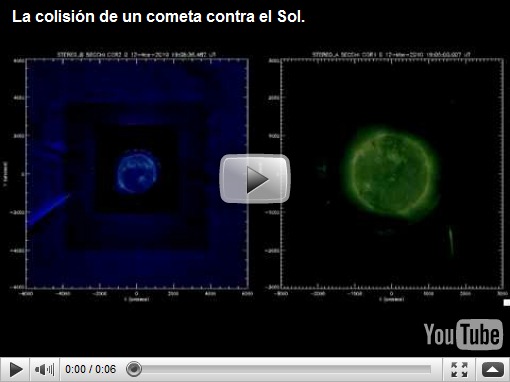 Los científicos utilizaron las naves espaciales gemelas STEREO (Solar Terrestrial Relations Observatory), lanzadas en 2006 por la NASA, para calcular la trayectoria del cometa cuando éste se acercaba a nuestra estrella. El objetivo era seguir su órbita. Dos días antes del impacto, los científicos ya estaban sobre la pista. La zona de choque se estimó en un círculo de 1.000 kilómetros de diámetro. Las particulares imágenes que acompañan estas líneas pudieron ser obtenidas porque una de las naves idénticas está situada delante de la Tierra, y la otra, detrás, lo que proporciona una «visión en estéreo» del Sol. Después, los investigadores analizaron los datos en el observatorio solar Mauna Loa de Hawai, y descubrieron lo que parece ser un cometa que se acerca por detrás del disco solar para después morir.
